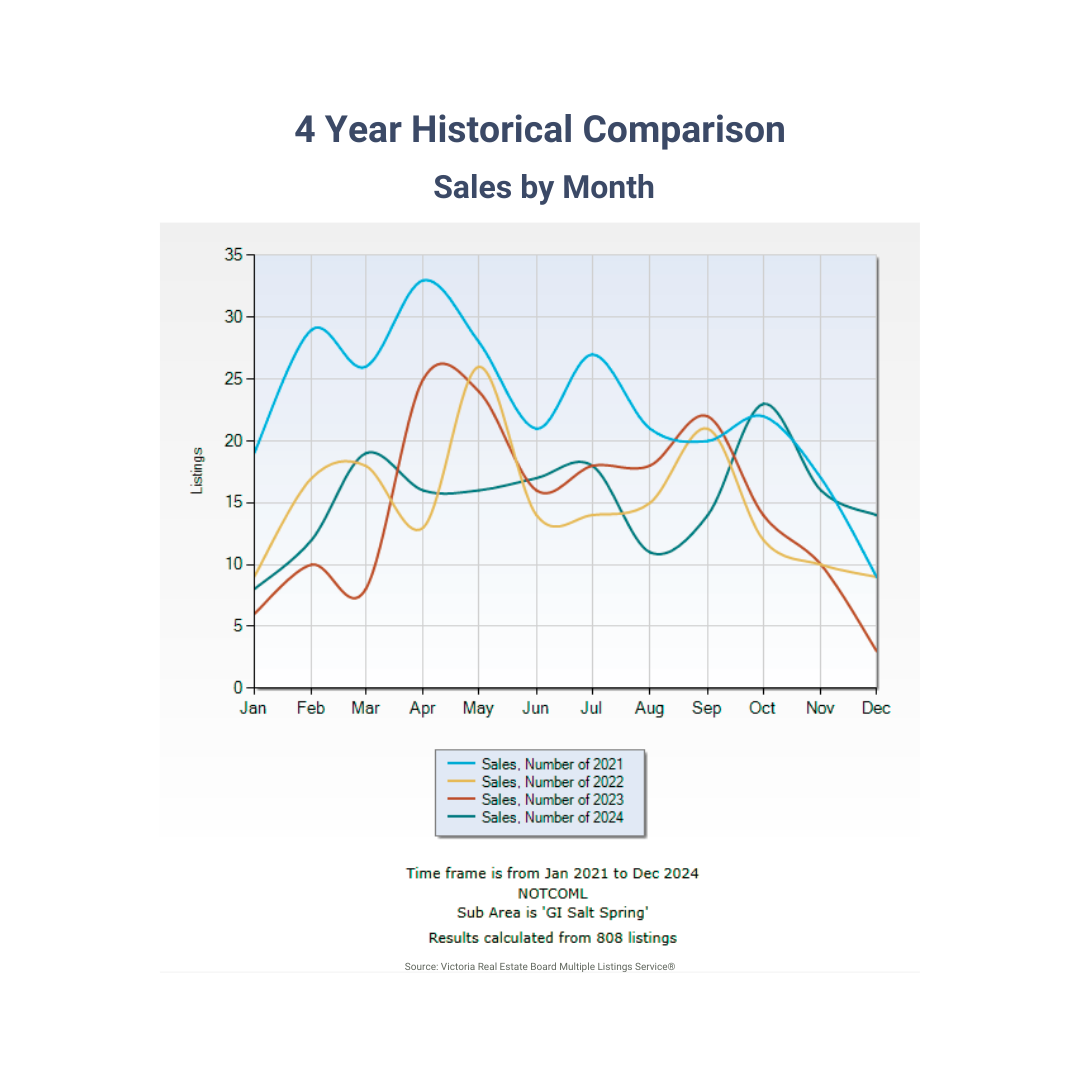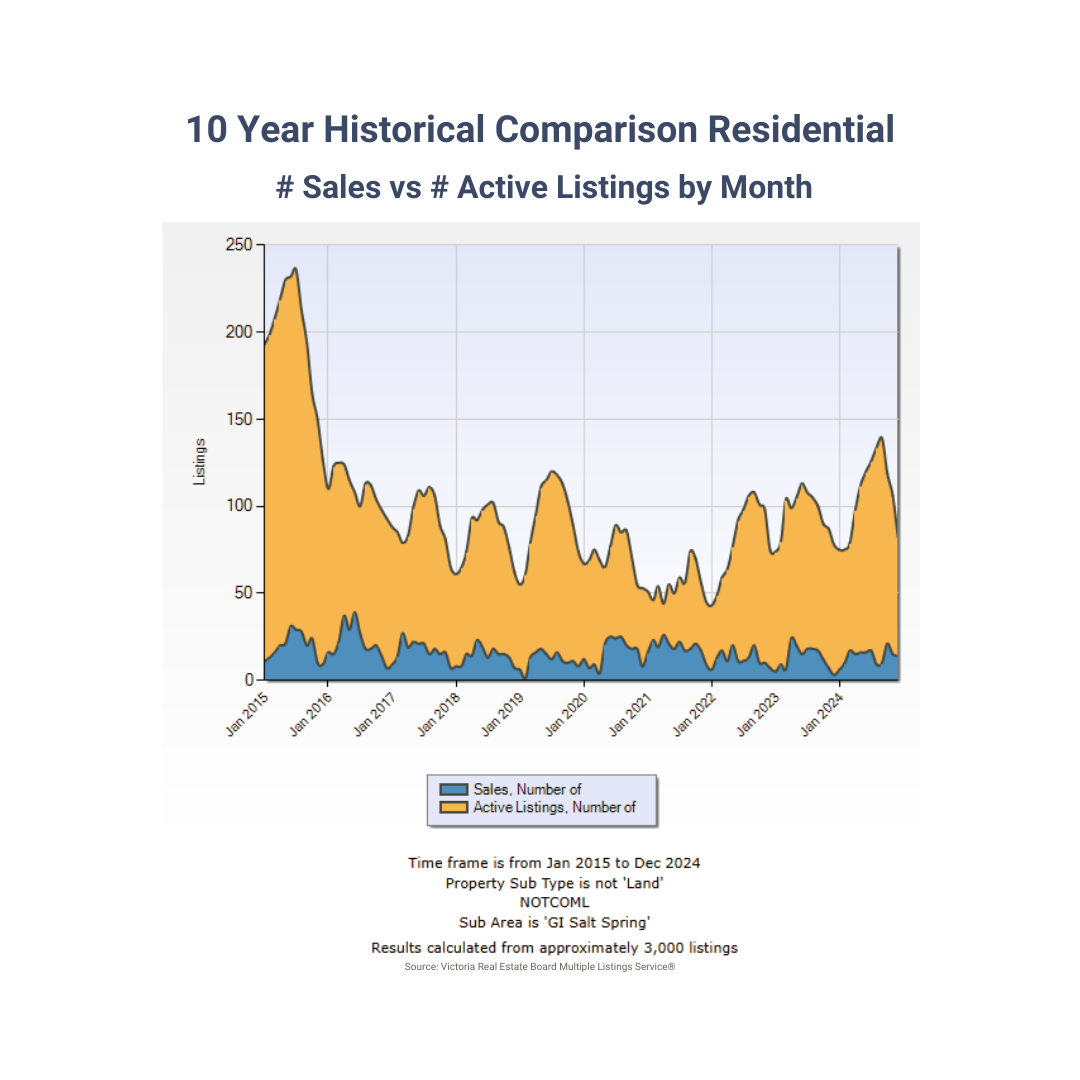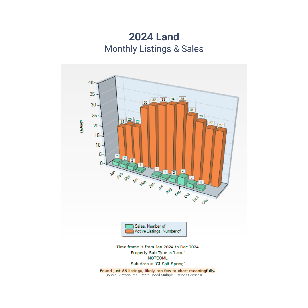The key question that remains is whether the market will lean towards buyers, sellers, or find a balance. Due to the relatively small scale of the Salt Spring property market, changes can happen swiftly. In light of persistent economic and geopolitical uncertainties, we maintain a cautiously optimistic stance for 2025, predicting some volatility as the market seeks equilibrium.