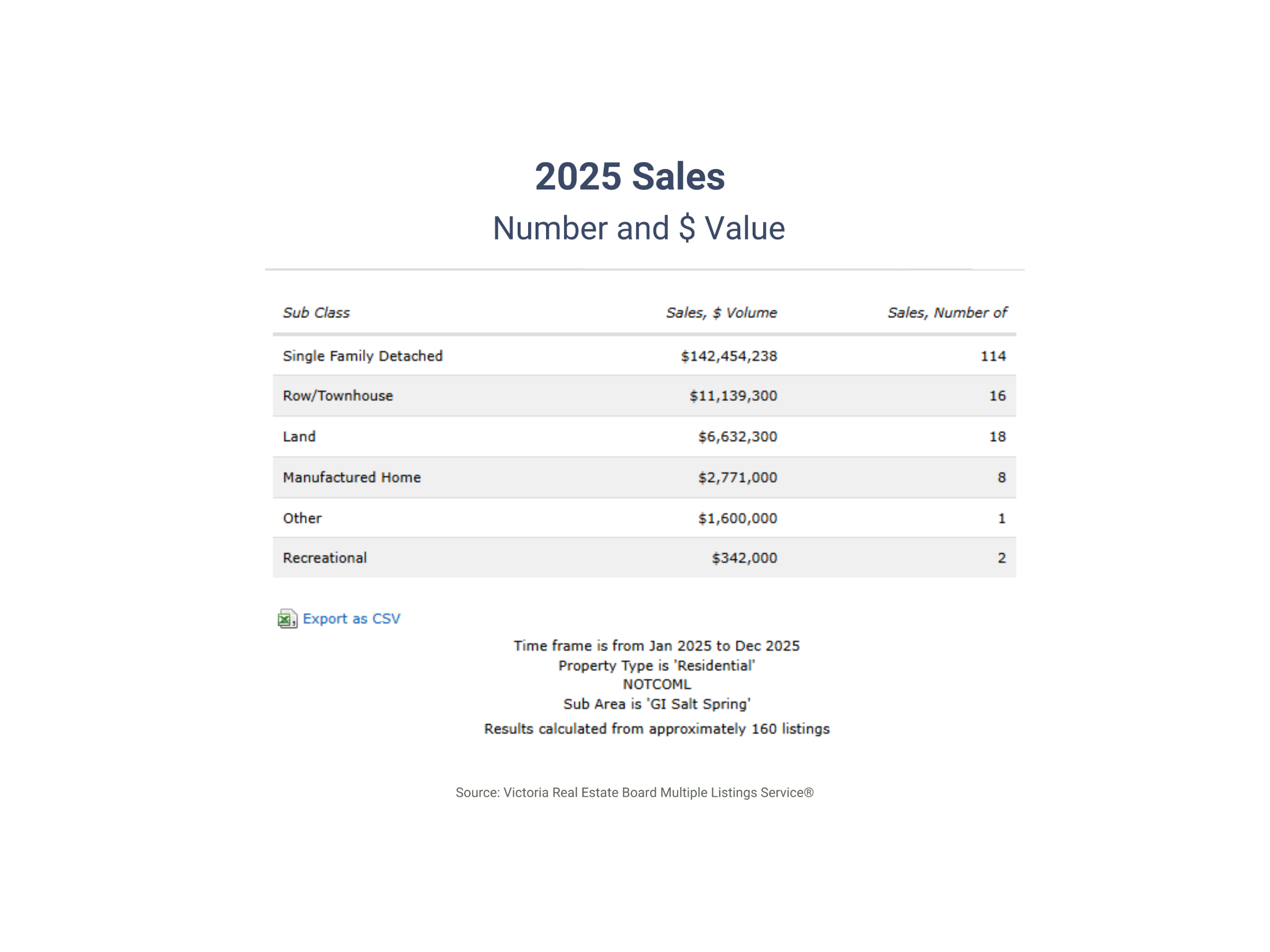 Salt Spring Island is a collection of micro-markets. Historical trends show long-term price growth but highlight the variability of smaller segments. Inventory levels, seasonal trends, and buyer interest in oceanfront or premium properties continue to influence sales.